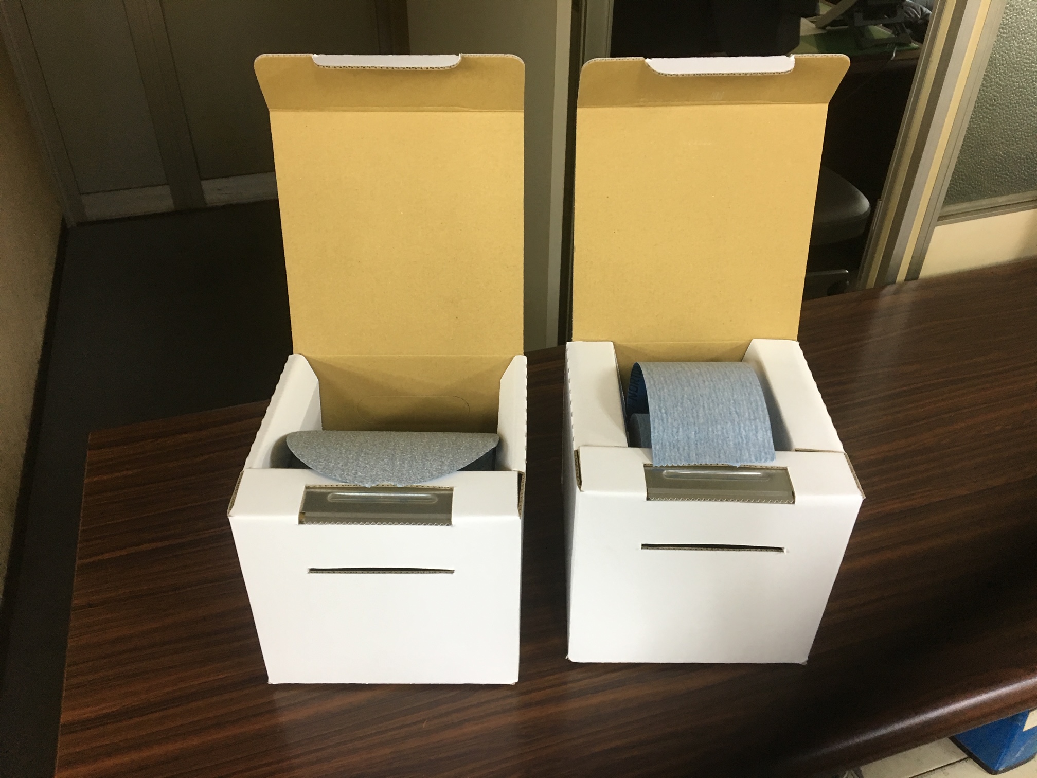 ロールのサンドペーパーを収納し、カッター付でそのまま使用できるBOXの作成の依頼がありました。