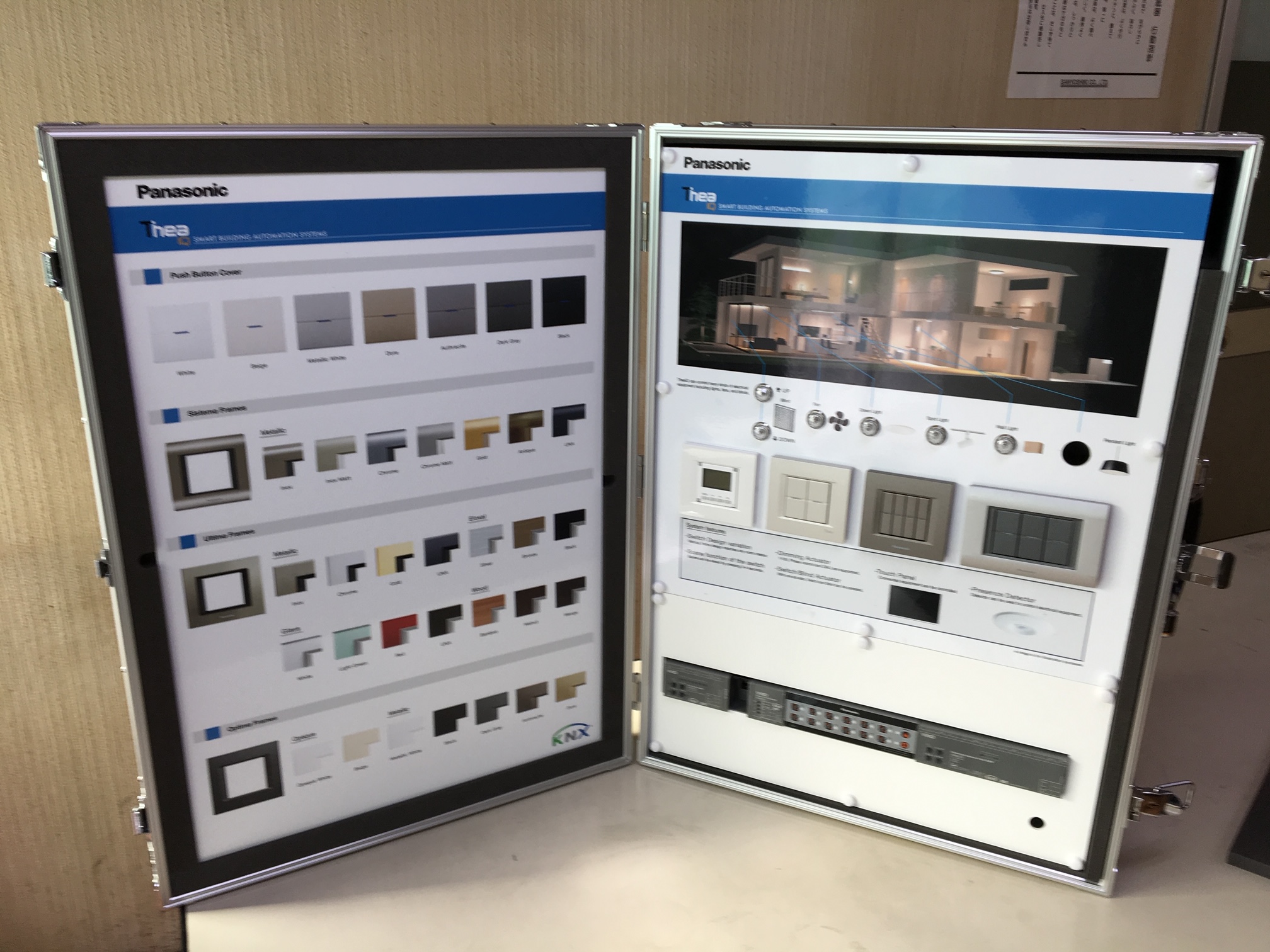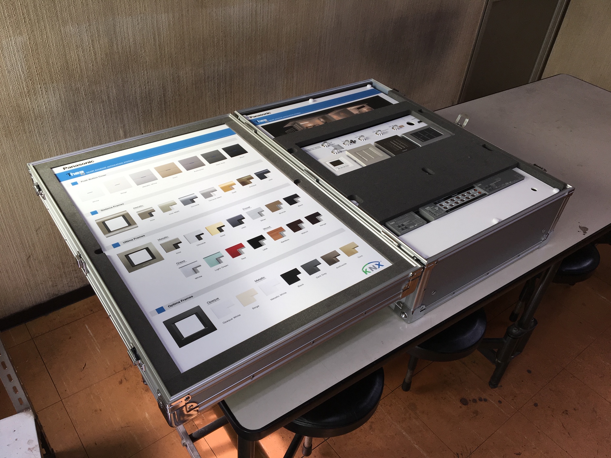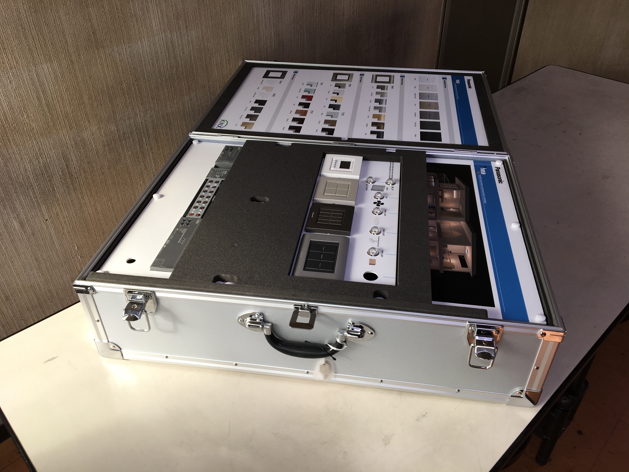 住宅設備の大型ボードをアルミケースに収納し、そのまま展示できるようにしました。