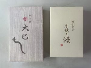 カラーダンボールに箔押しした、うなぎのギフトケースです。