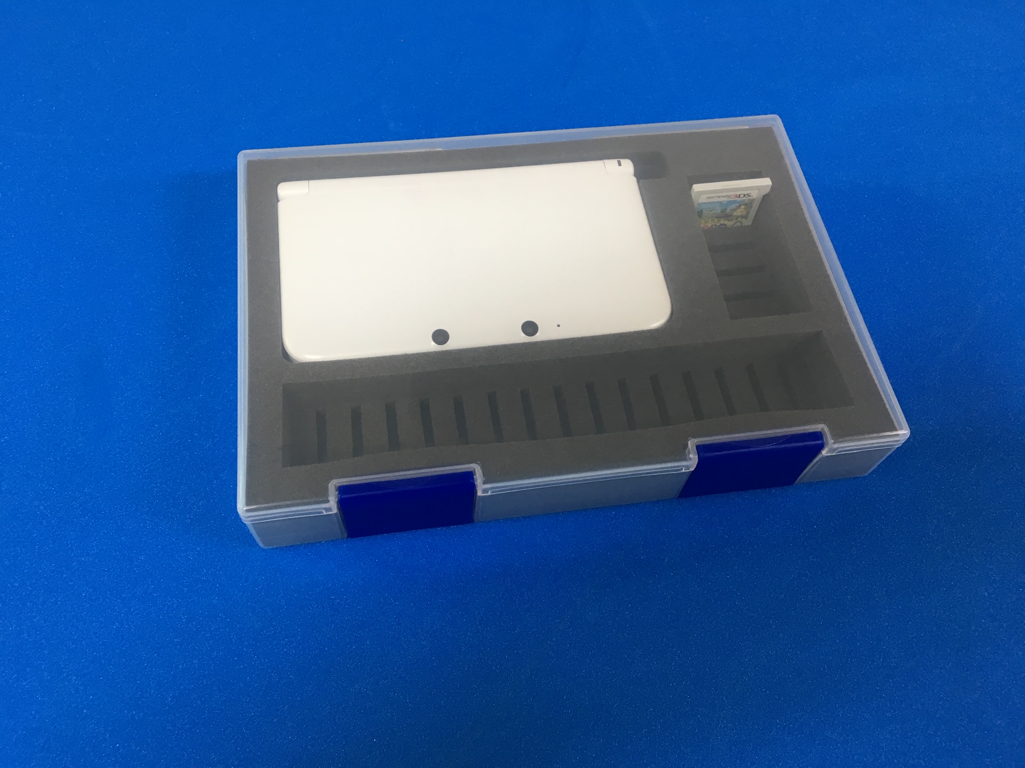 既成のケースにゲーム機とカセット20個を一緒に収納できます。