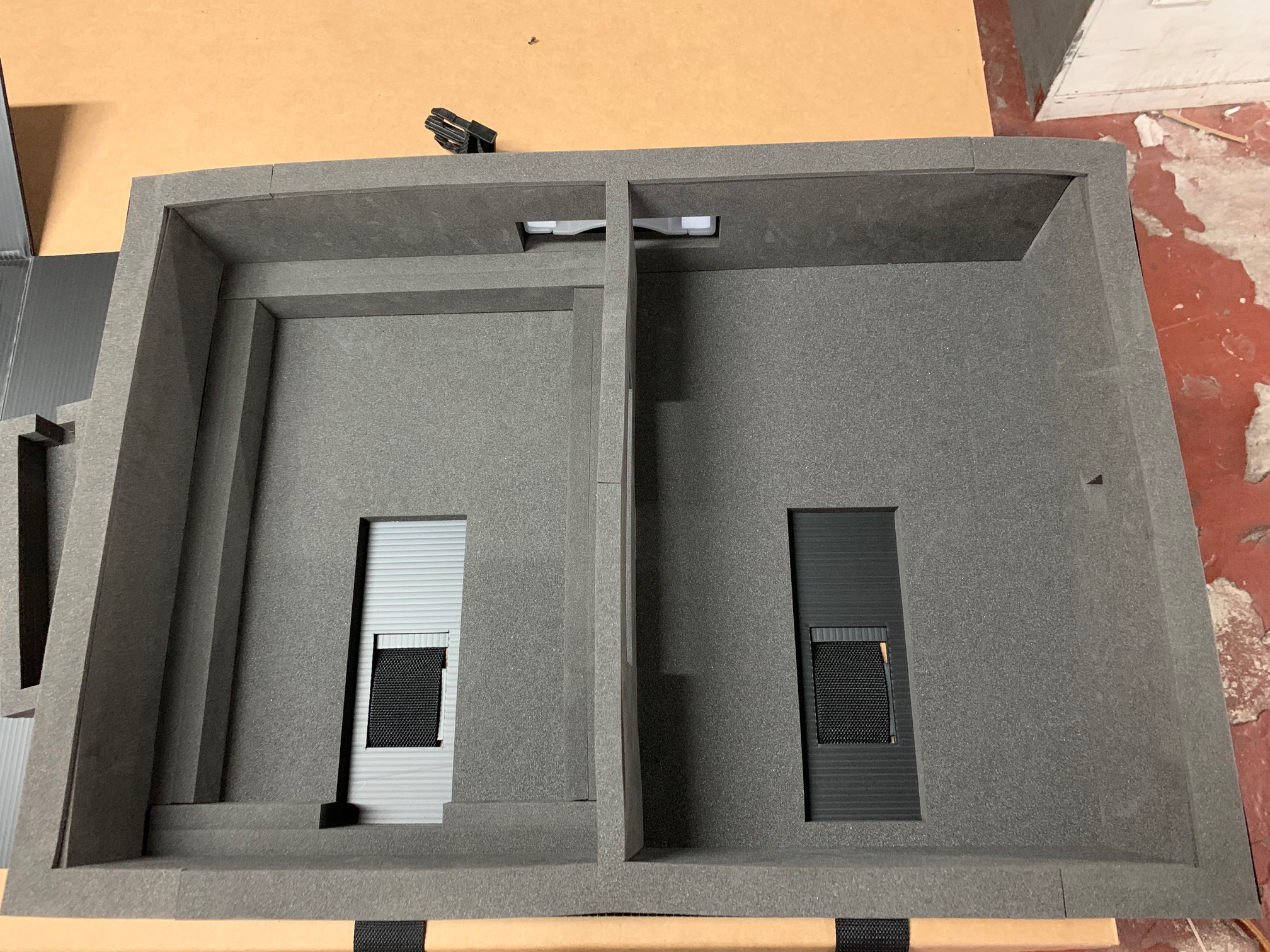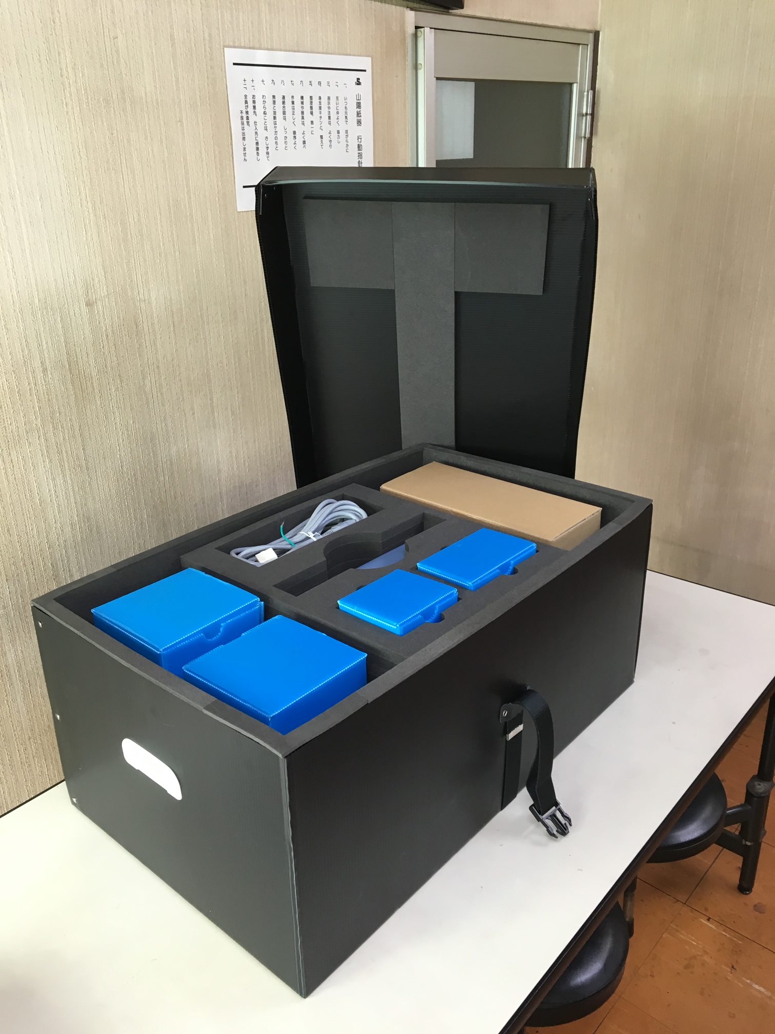 精密機器を周辺部材と一緒にPDPBOXに収納しました。