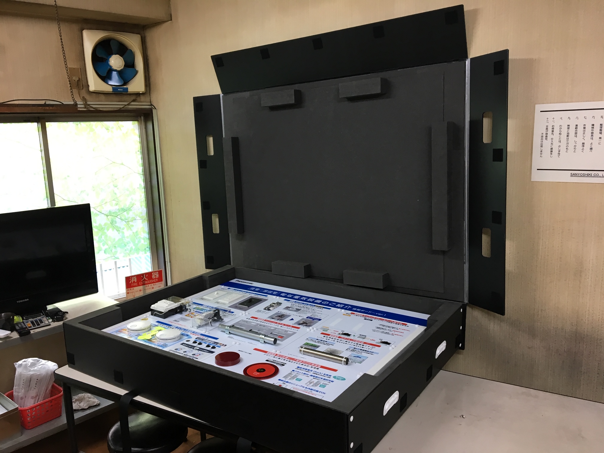 大型電機設備展示ボードの収納BOX