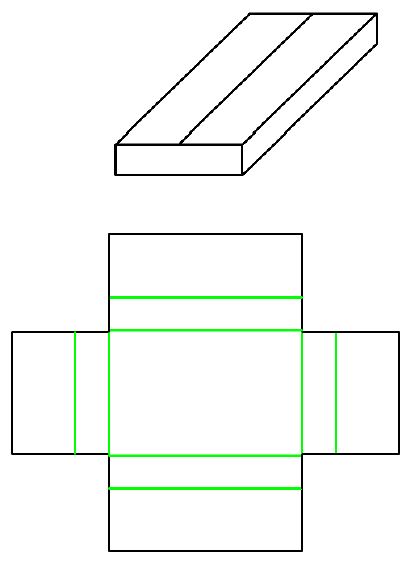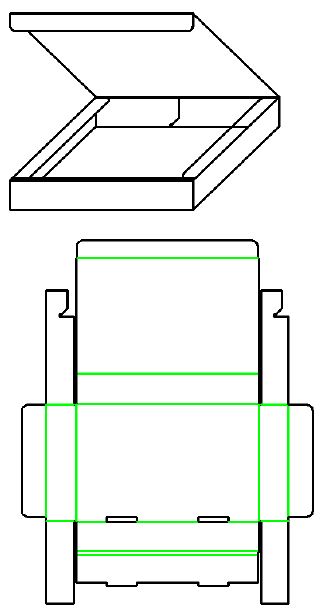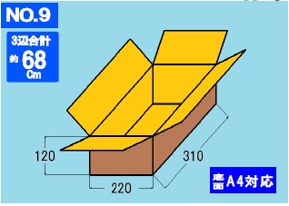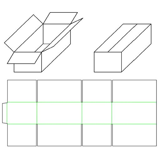 ●上下テープ貼りする一番、一般的なタイプの箱です。プリスロと呼ばれる専用機で刃物の調整のみで作成し木型等のイニシアルコストが発生しません。
