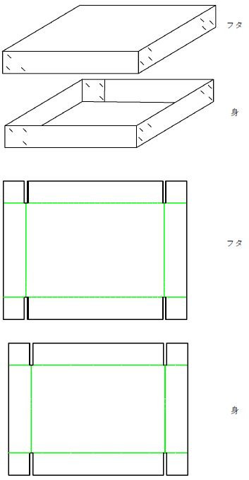 ●身とフタの2ピースに分かれたお弁当箱タイプの箱です。